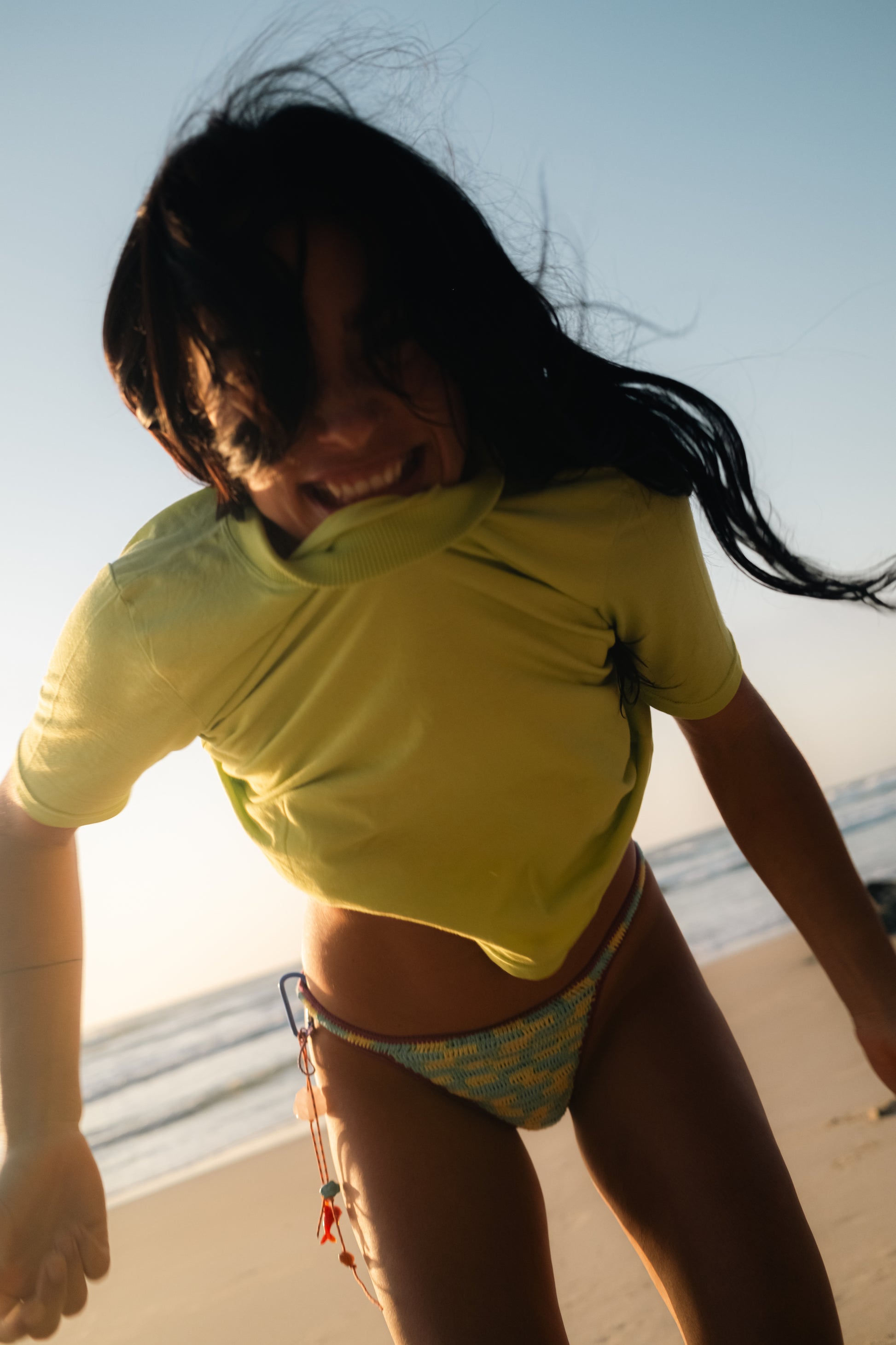 The bottoms have elasticated hems so that they stay in place while swimming and surfing.