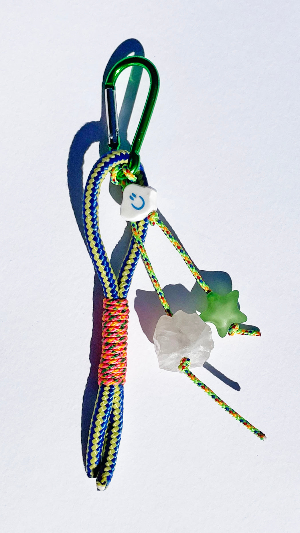 Fun, tech and ever changing trinkets. This drop features Glass Dolphins, small glass fish, glass beads, stars, nylon rope and a chunk of precious crystal.