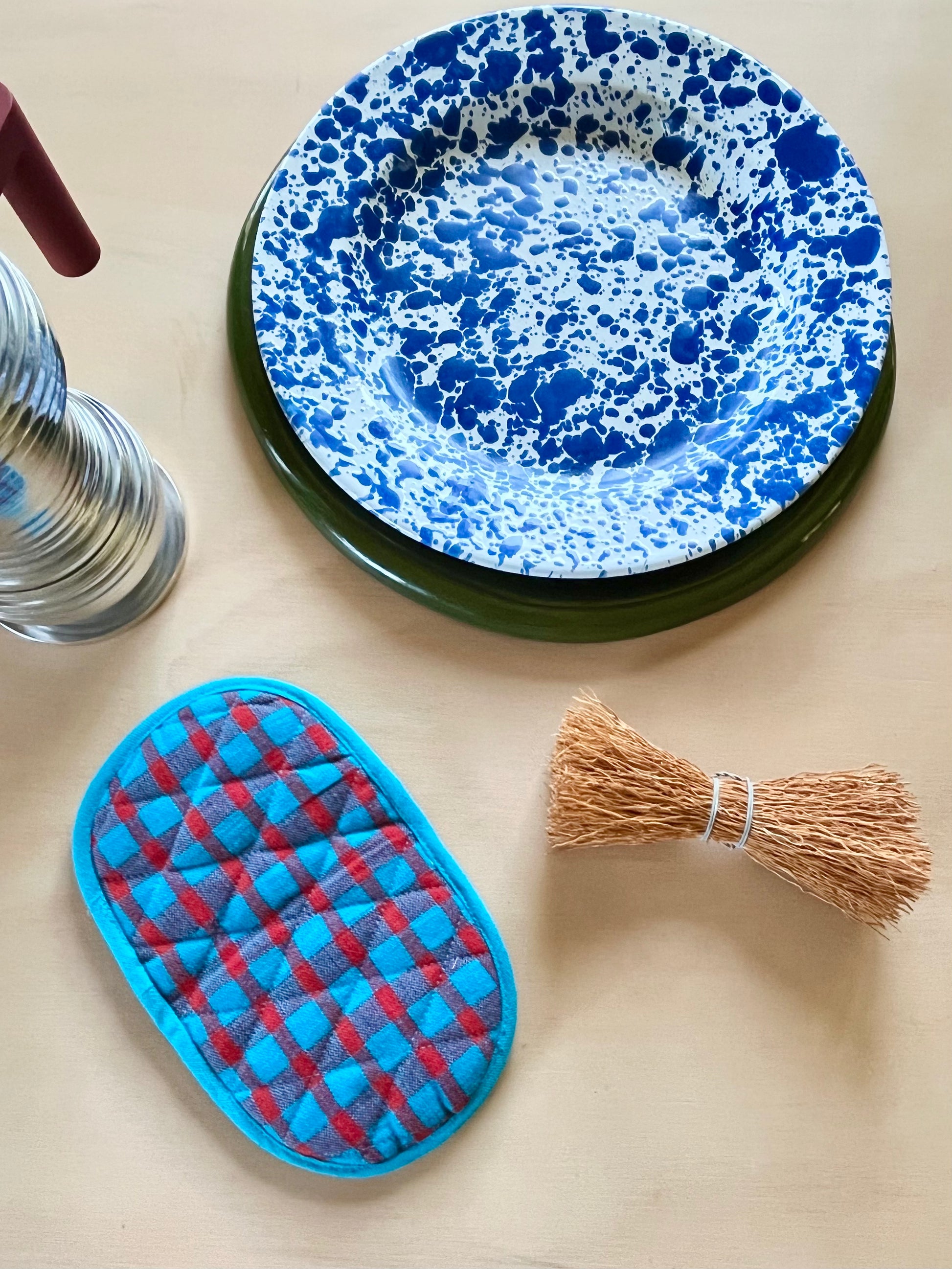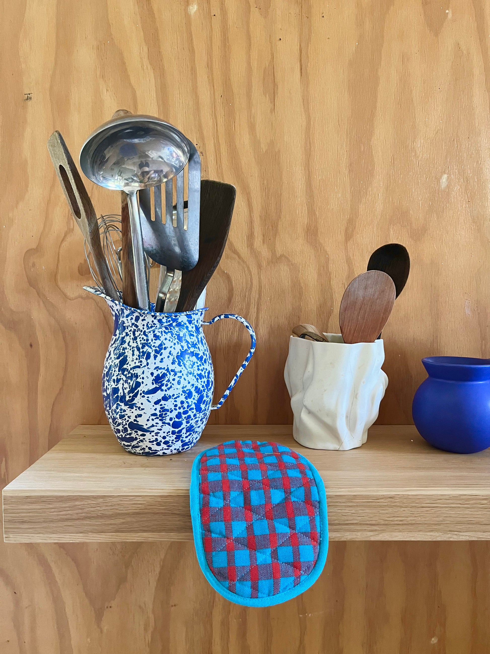 Oven mitt hand made using hand-woven fair trade khadi fabric.