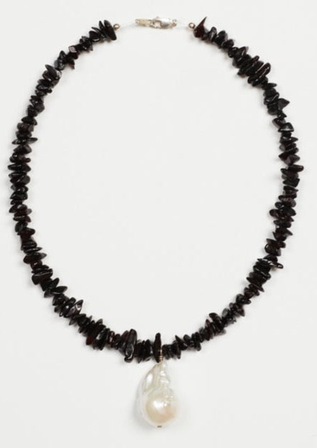 Cherry Baltic amber, real cultured fireball pearl, sterling silver hardware.