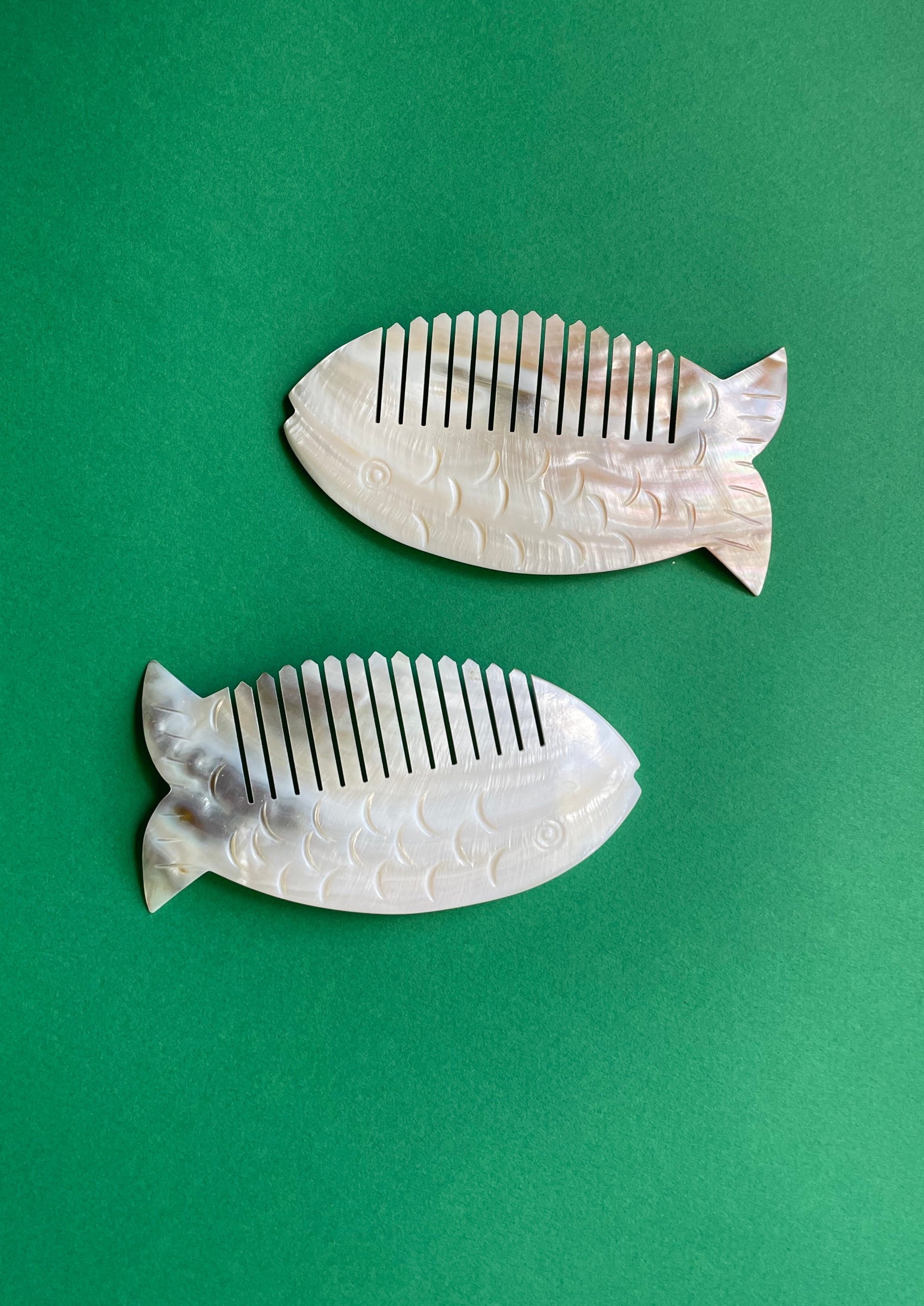 Sweet little hair combs in the shape of a fish.